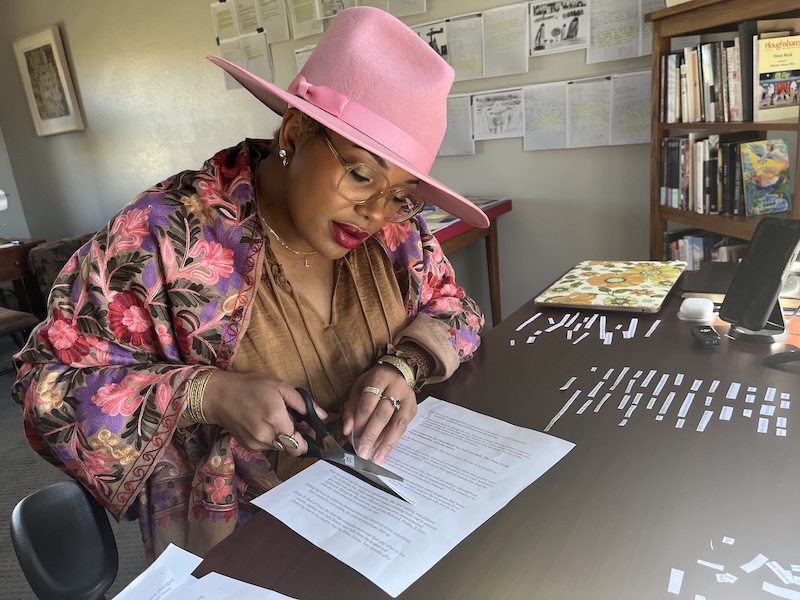 What makes L. Renée’s work so vital to the library space is her use of erasure poetry. By physically and linguistically “erasing” the corporate jargon and strategic communication found in coal industry documents, she uncovers the “remains;” the hidden truths and human costs buried beneath the administrative surface. Moreover, the contrapuntal poetry exemplifies L. Renée’s painstaking physical process. This is not digital erasure; it is a tactile, manual labor of “cutting out.” By physically removing layers of corporate jargon and administrative doublespeak from archival documents, she mimics the “removal” seen in the landscape itself. Each cut is a deliberate act of uncovering the human story buried beneath the surface; a slow, meditative reclamation of the “remains.”